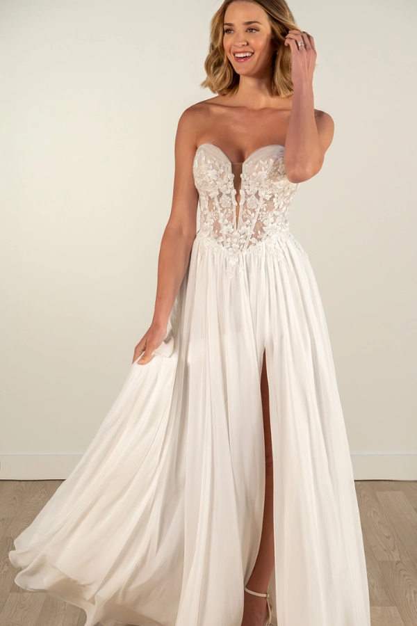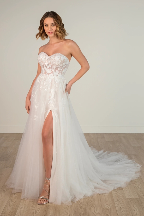 Wichtig: Da wir für Dich unser Brautkleid-Sortiment ständig aktualisieren und auf der Suche nach der neusten Brautmode sind, ist es möglich, dass das ein oder andere Brautkleid aus unserer neusten Kollektion, welches Du hier schon siehst, erst in ein paar Wochen zur Anprobe bereit steht oder vielleicht bereits abverkauft wurde und dadurch nicht mehr verfügbar ist. Um sicher zu gehen, dass Du Deine Favoriten bei Deiner Brautkleidberatung bei uns anprobieren kannst, darfst Du uns gerne schon im Vorfeld kontaktieren und fragen, ob Dein Traumkleid zum Zeitpunkt Deiner Anprobe da ist.